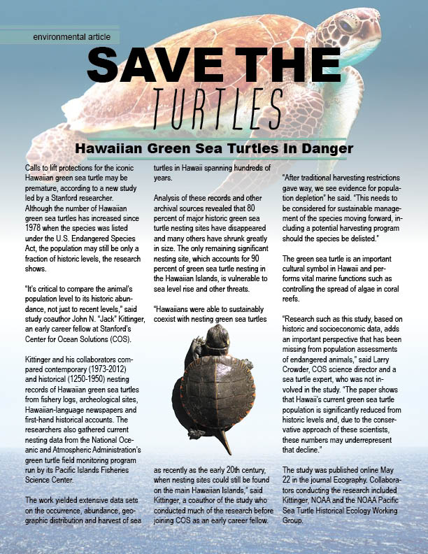 For this project, I was given body text and images to make a publication design about Hawaiian green sea turtles. I made a nice background for the text to sit on and still be readable, I chose a catchy title, and I put a brief summarization in. I also put my text into columns and wrapped text around one of the photos I was given. I considered the layout and wanted to make it like something in a professional magazine article.