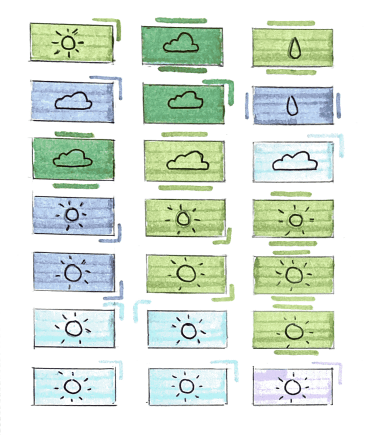 Have you ever wondered what your emotions would look like at a glance? Well, this past week I took inspiration from Dear Data and kept a record of my emotions. I decided to chunk each day into three sections and record how I was feeling in the morning, the afternoon, and at night. I also kept a record of why I thought I was feeling this way, and what the weather was like at the time.
